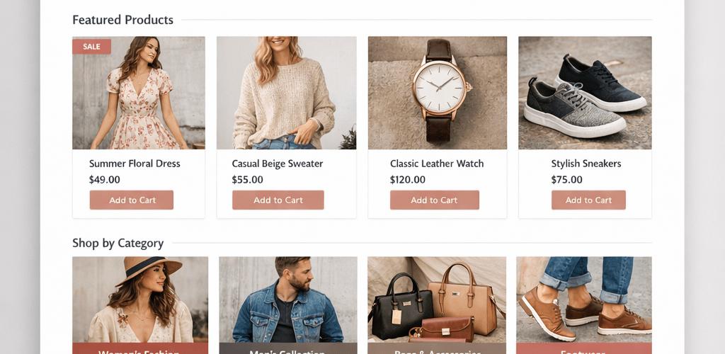 Bangun toko online yang siap menerima pesanan 24 jam, mudah digunakan, dan terintegrasi dengan sistem pembayaran serta pengiriman.